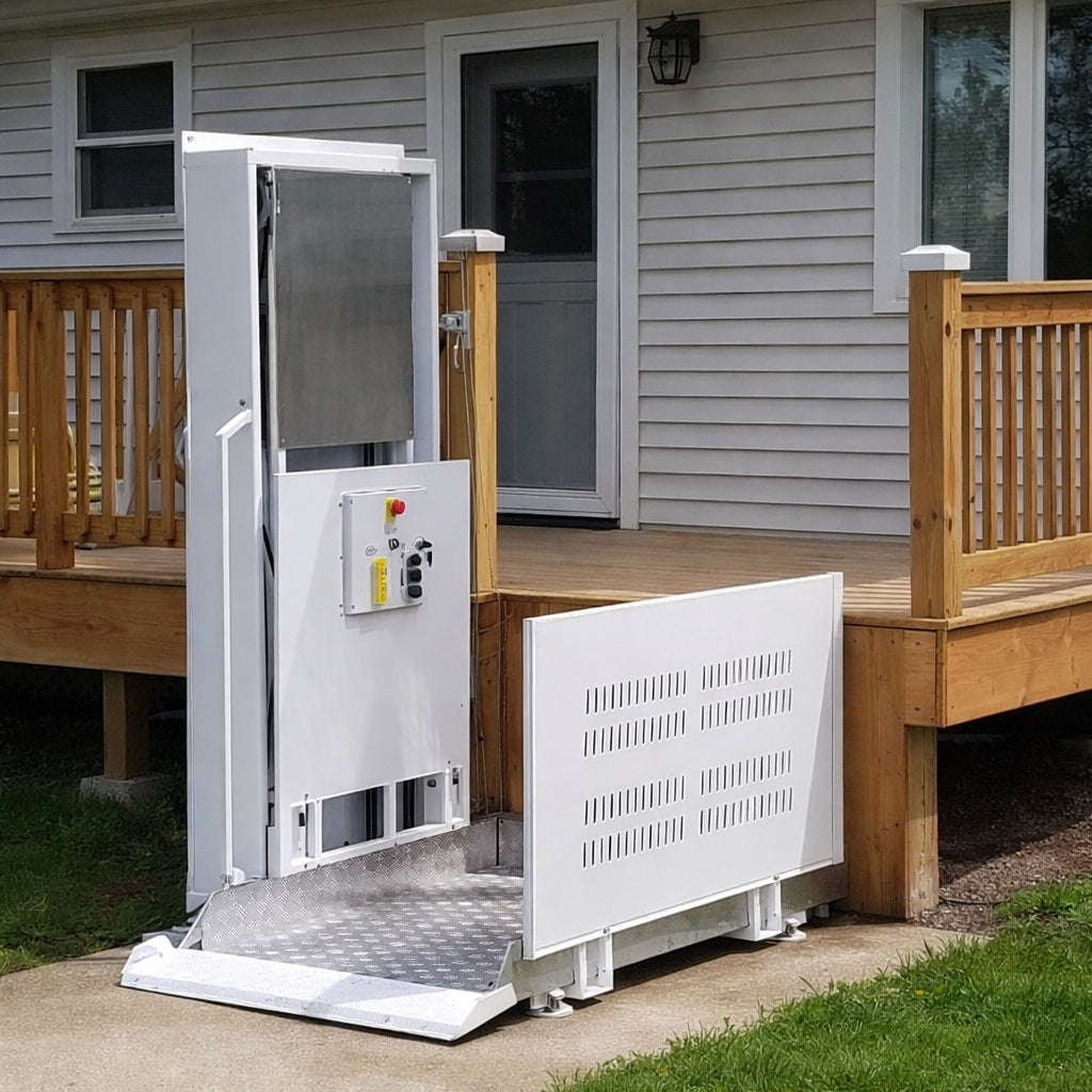 A wheelchair lift, also known as a vertical platform lift, is a residential accessibility device that raises and lowers a wheelchair user between levels. It is commonly used for porch, deck, and garage access where ramps may be too long or steep.